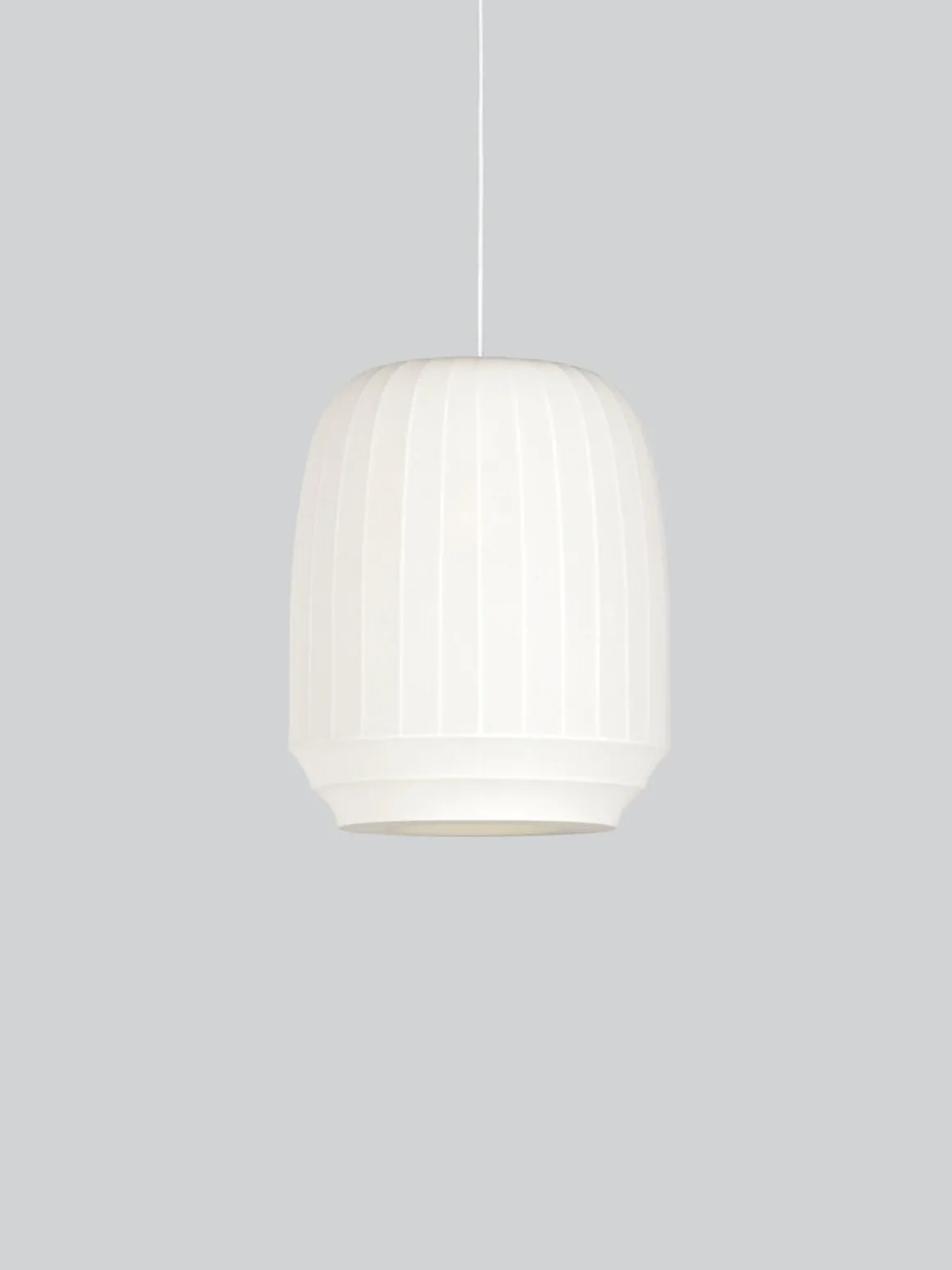 Denne distinkte og dekorative designen med sin finstrikkede nyanse vil skape en vakker atmosfære, komplementere innredningen din og forbedre opplevelsen av hjemmet. Skjermen er laget av off-white polyesterrør og strekkes forsiktig over den hvite metallrammen før den festes øverst og nederst. Tilgjengelig i tre former, «Small», «Tall» og «Large Oval», er strømkabelen også skjult i en ren silkeledning.