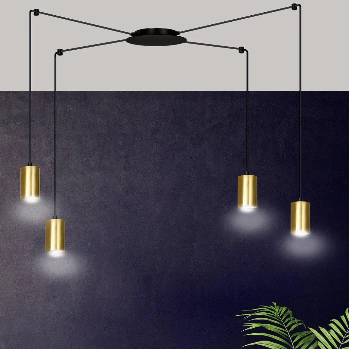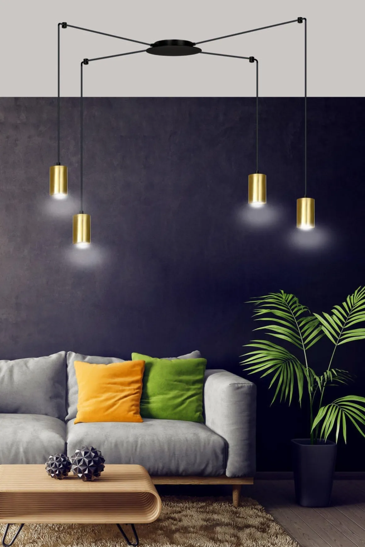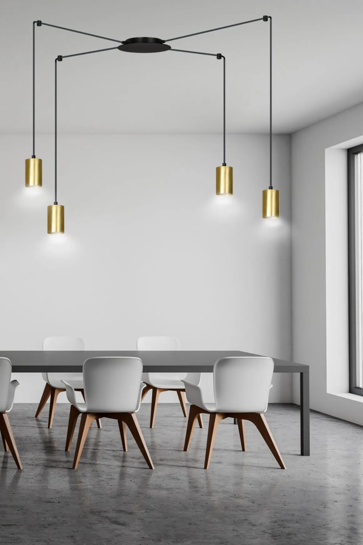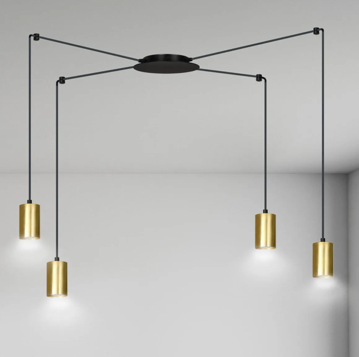 Traker er en moderne og stilfull takpendelserie. Modellen finnes som 6,4 eller 1 lys. Finnes i fargene sort eller hvit, finnes også som hvit eller sort, med gulfarget detaljer Merk at lampen bruker spot pærer GU10 slik at lyset blir mer direkte.
