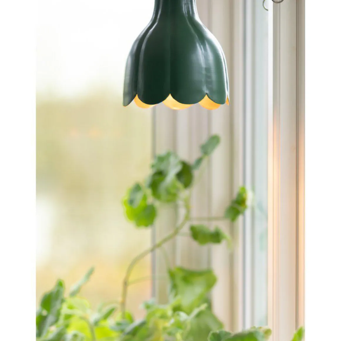Grønn eksteriør med gyllent interiør som sprer en varm, deilig glød. Hver lampe er laget for hånd.
