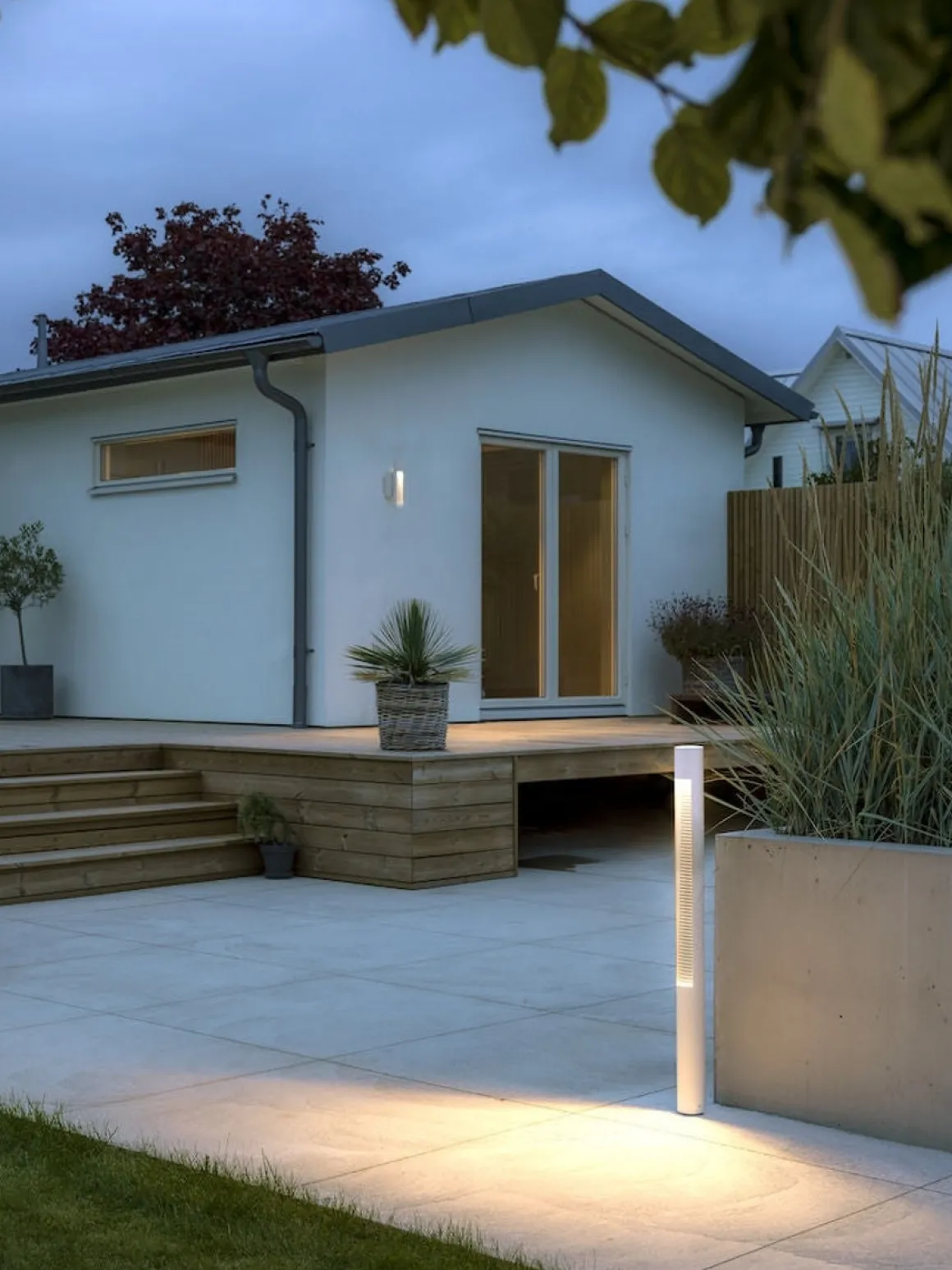 Udine er en stilren utelampeserie, som blant annet finnes som vegglampe og puller. Finnes også i fargene svart eller hvit.