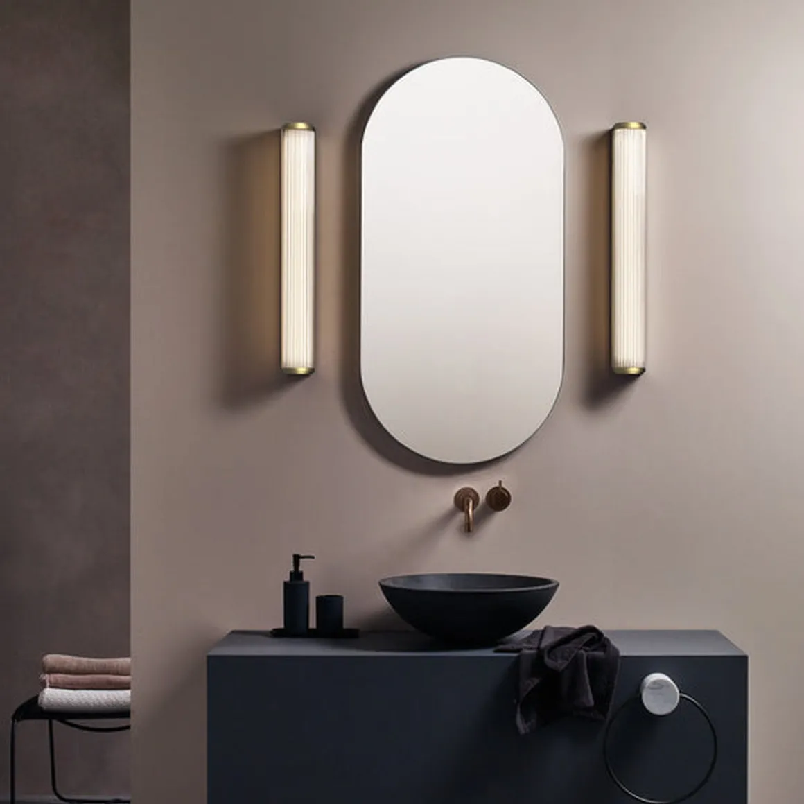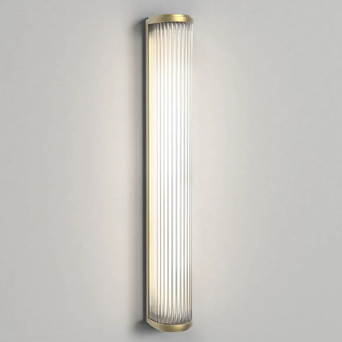Vegglampen Versailles 600 er inspirert av klassiske design fra 1930 -tallet. Den er først og fremst beregnet for bad, men den strømlinjeformede designen utfyller ethvert rom. Laget av individuelle glass-stenger med gullfarget ende hetter, gir den funksjonell, blendingsfri oppgavebelysning som utstråler vintage-glamour.