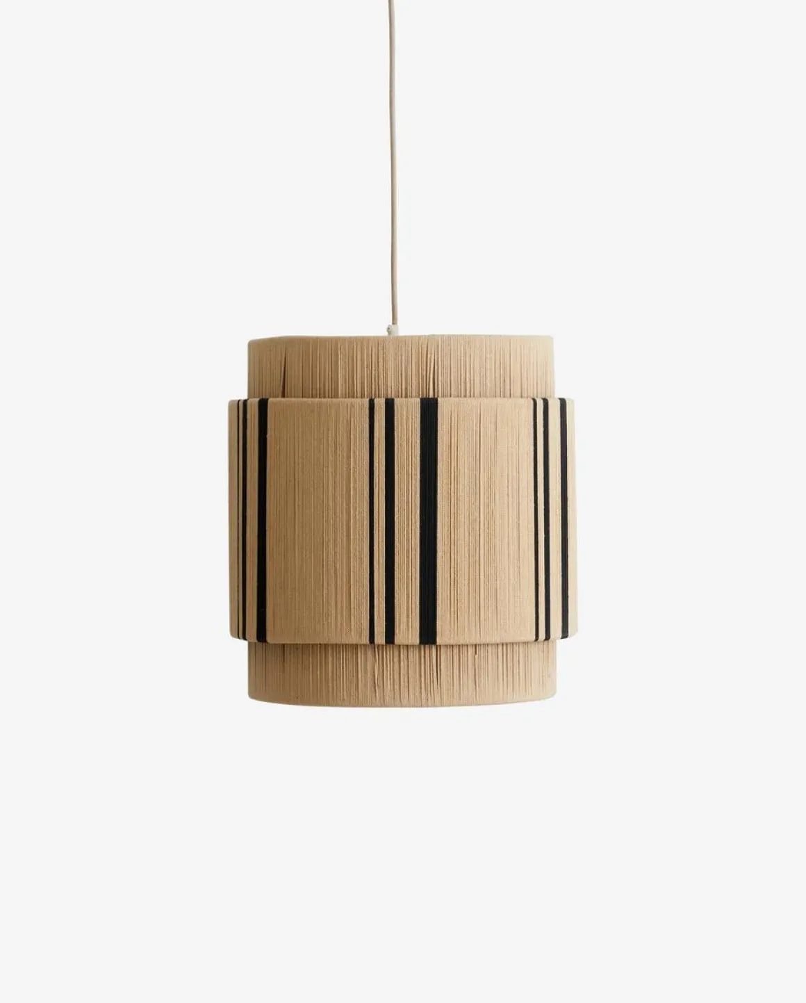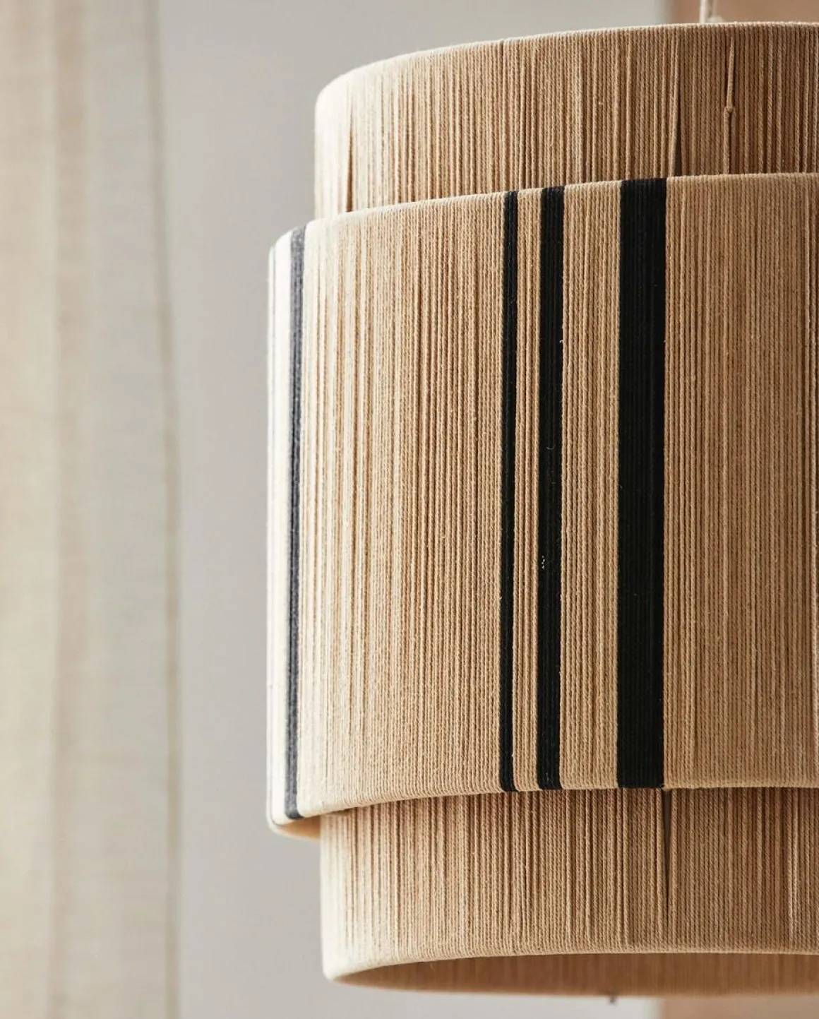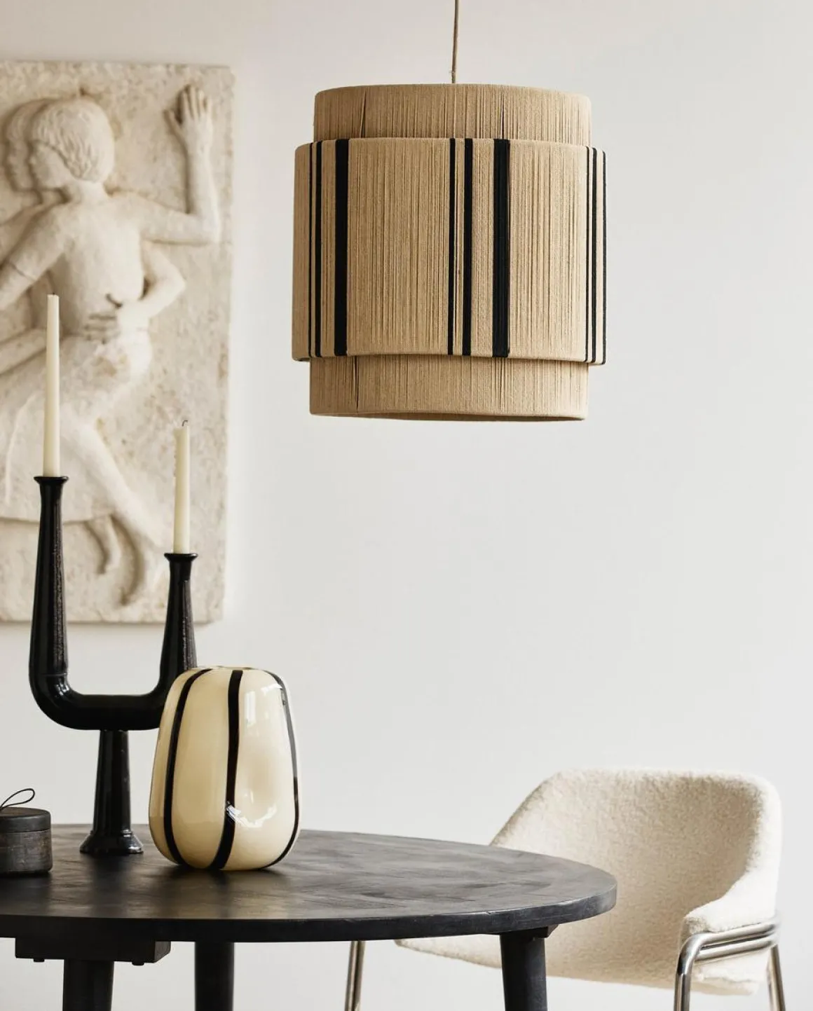 VINATA lampe med bomullsflett i en blanding av beige og sort. En ren og elegant lampe med et grafisk, stemningsfullt design. Med en myk form og varm farge, er VINATA en stilig lampe som vil skape en hyggelig atmosfære i ethvert interiør. VINATA bringer en behagelig atmosfære til rommet med sitt myke og fokuserte lys. Bruk VINATA på forskjellige steder rundt i hjemmet ditt, for eksempel til praktisk belysning i gangen, eller kombiner flere VINATA-lamper for et mer voluminøst, dekorativt utseende.