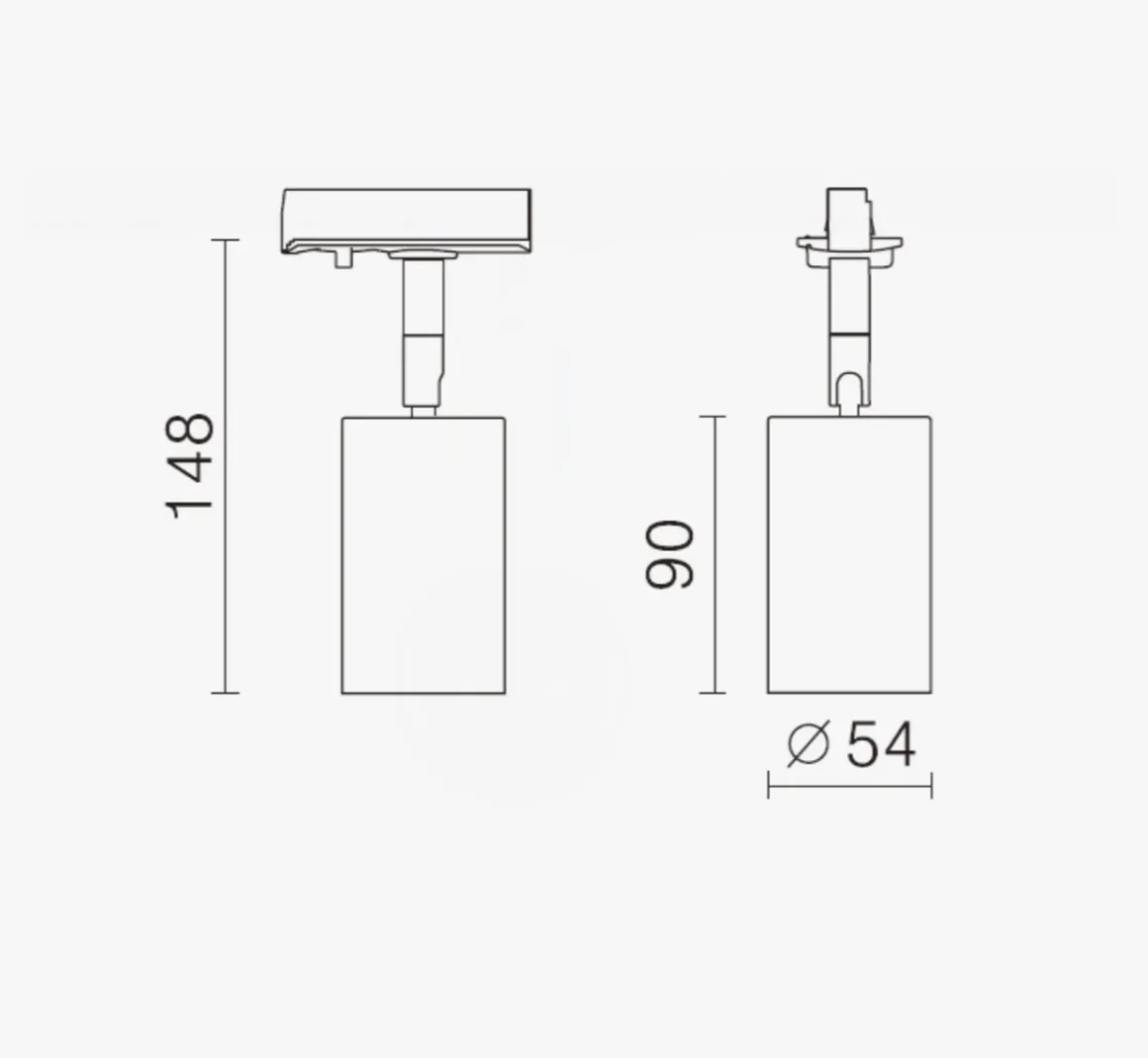 Moderne og tidløs spot som passer til Vox skinnesystem (1-tenning). Du behøver 1 stk lyspære med E27-sokkel pr. spot.