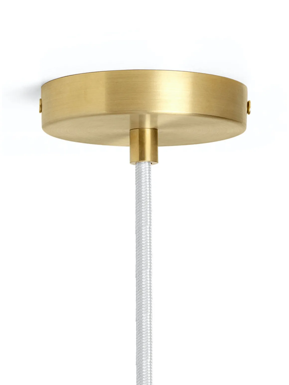 Vuelta taklampe fra Ferm Living smelter sammen kompleksitet med moderne enkelhet og har sylindrisk opalt glass med en tydelig rillet overflate og detaljer i messing. Lampen har en LED-lyskilde som avgir et mykt, diffust lys. Det medfølger en fjernkontroll som dimmer lyset for optimal atmosfære i rommet. Lampen er flott alene eller heng flere lamper på rad.