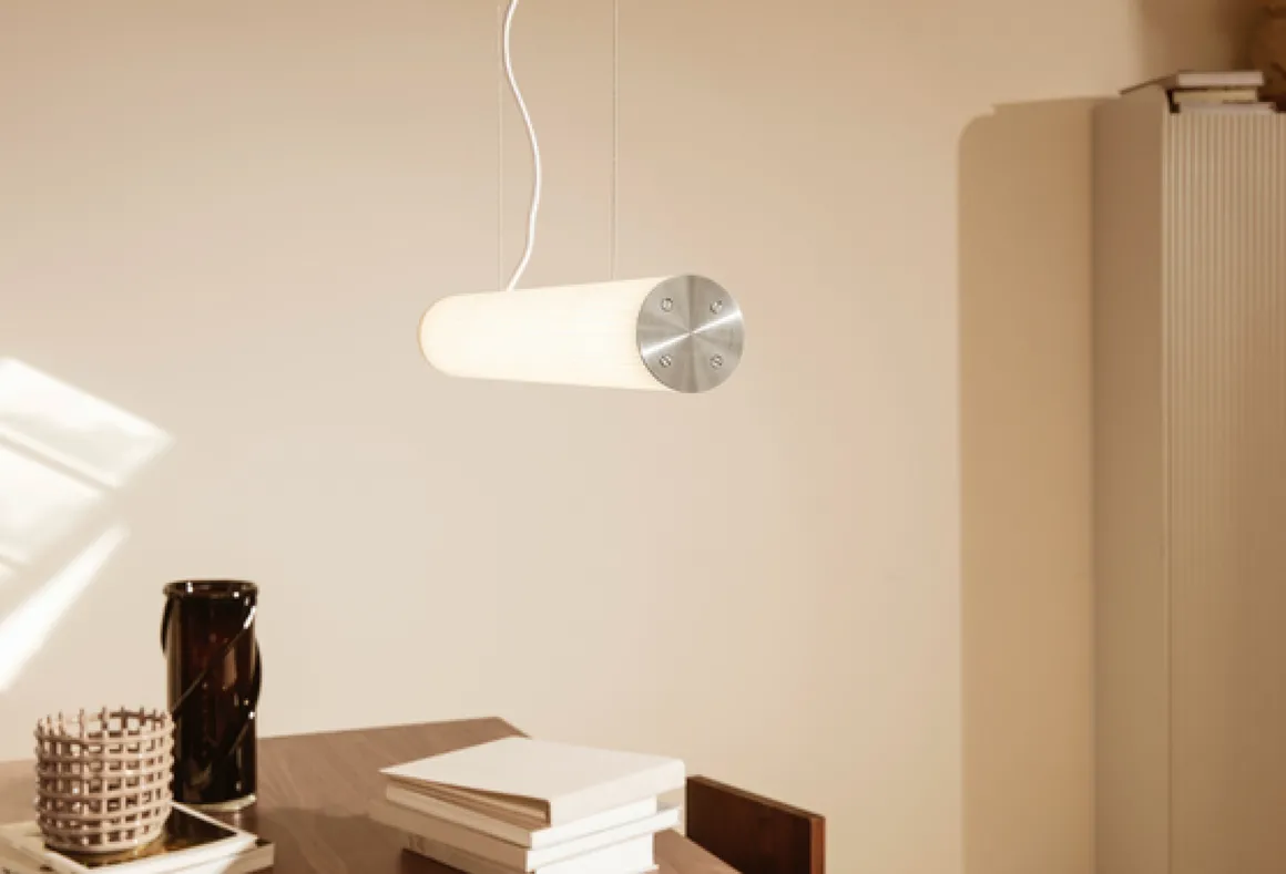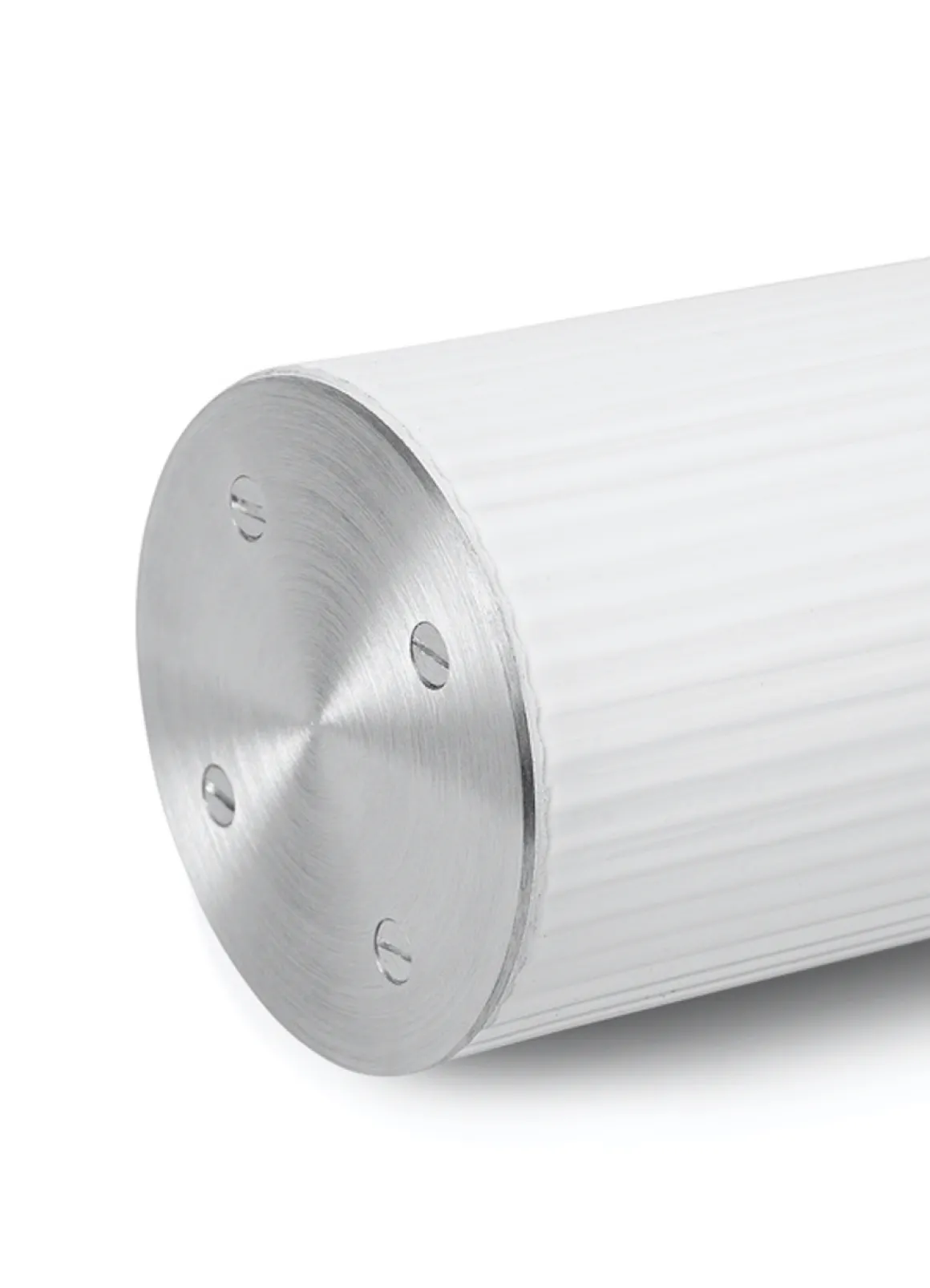Vuelta taklampe fra Ferm Living smelter sammen kompleksitet med moderne enkelhet og har sylindrisk opalt glass med en tydelig rillet overflate og detaljer i stål. Lampen har en LED-lyskilde som avgir et mykt, diffust lys. Det medfølger en fjernkontroll som dimmer lyset for optimal atmosfære i rommet. Lampen er flott alene eller heng flere lamper på rad.
